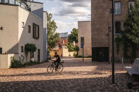 Odense Letbane og en supercykelsti går gennem området og vi ser hvordan parkeringskælderen under området er udformet.
